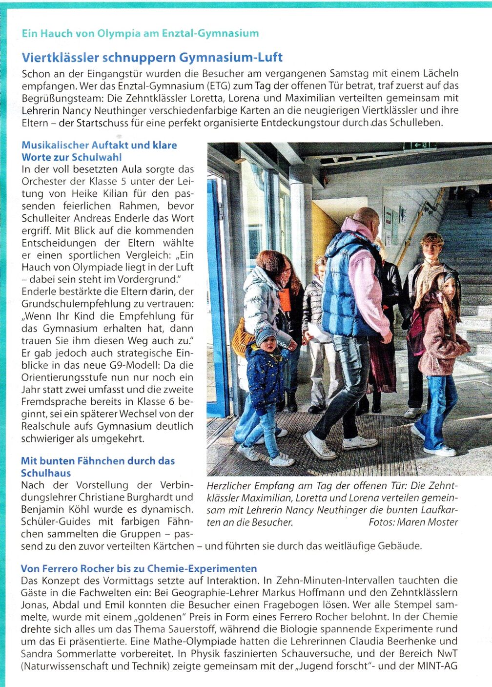 Spannende Eindrücke des Schnuppertags, eingefangen von Frau Moster und veröffentlicht im Wildbader Anzeigenblatt, spiegelt der eingestellte Artikel wider.